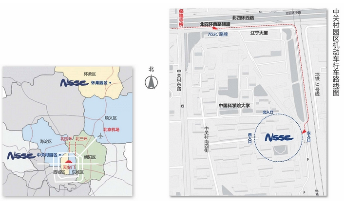 无论您从哪个方向来,都请驱车至北四环路“保福寺桥”的东南角,再沿北四环辅路,按“国家空间科学中心”路牌指示,途径“辽宁大厦”,共行驶约850米,从空间中心东门进入工作园区。
